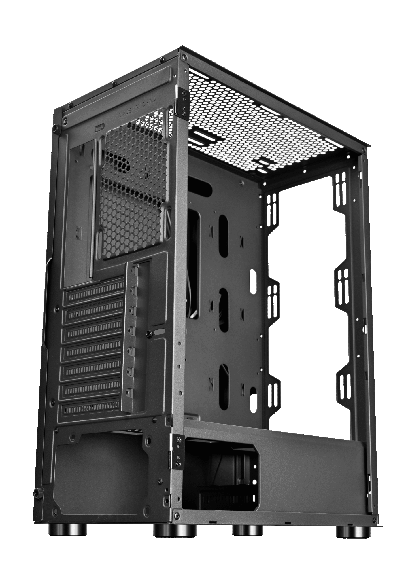 Easily connect peripherals and store components securely with its USB/audio panel and seven PCI slots.