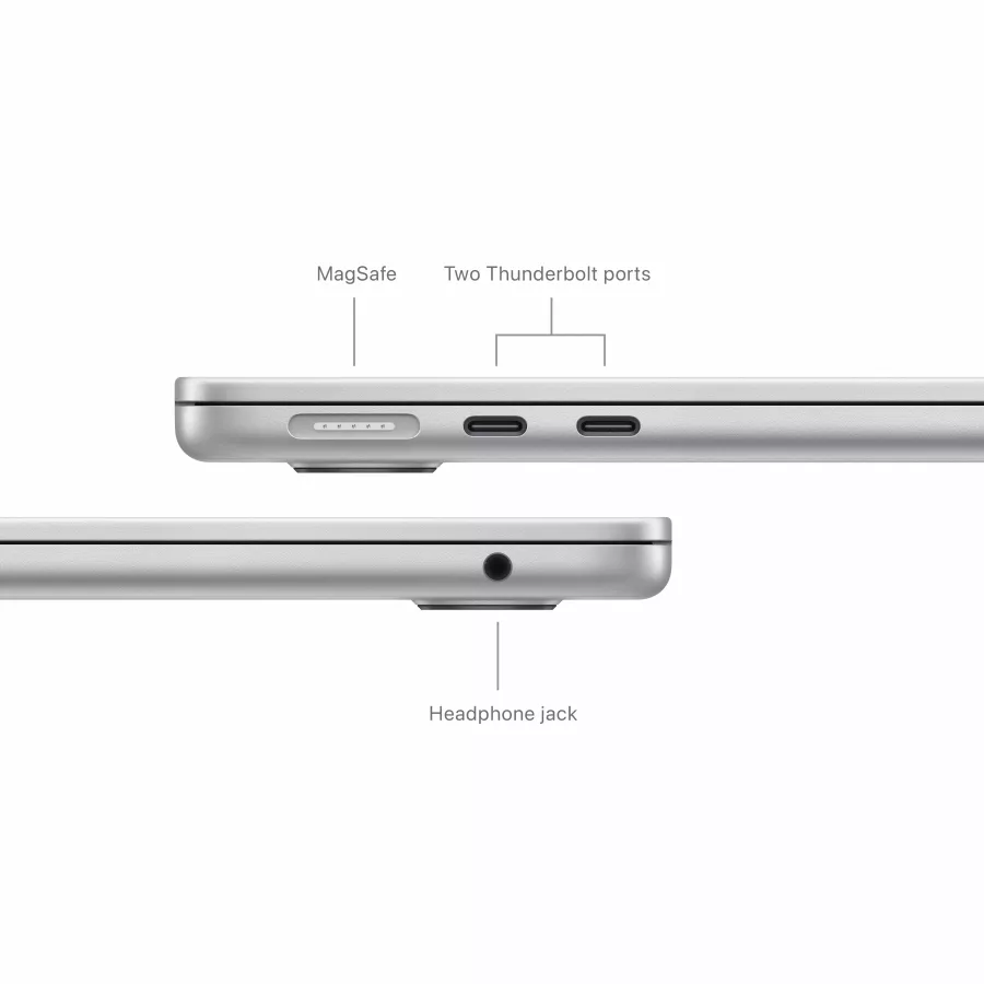 The MacBook Air features a breathtaking 15.3-inch Liquid Retina display, offering vibrant colors, sharp details, and true-to-life visuals. With a resolution of 2880 x 1864 pixels, support for 1 billion colors, and 500 nits of brightness, every image and video comes to life with stunning clarity. Whether you’re editing photos, watching movies, or browsing the web, the display delivers an immersive viewing experience.