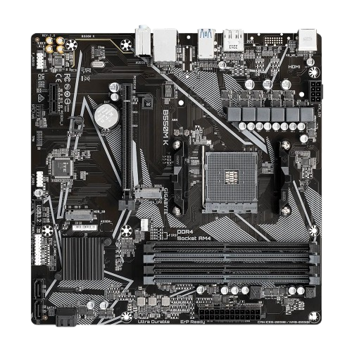 The Gigabyte B550M K is a Micro‑ATX motherboard built on the AMD B550 chipset with the AM4 socket. It supports AMD Ryzen™ 3000, 4000 G‑series, and 5000 (including G‑series) processors—offering excellent compatibility and future potential for Ryzen-based builds.