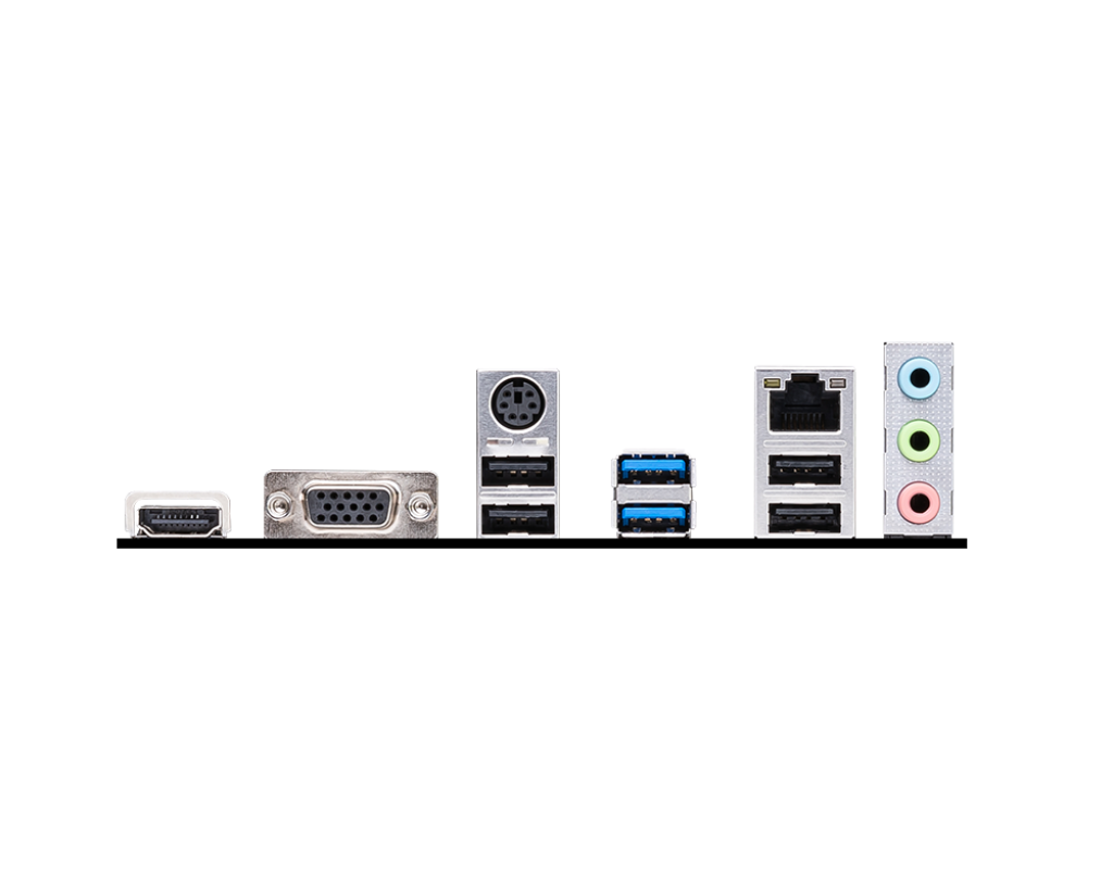 USB & Video Outputs: Four USB 3.2 Gen 1 Type‑A ports at 5 Gbps and eight USB 2.0 ports for broad compatibility. Native HDMI 1.4 supports 4K@30 Hz; legacy VGA is also provided.