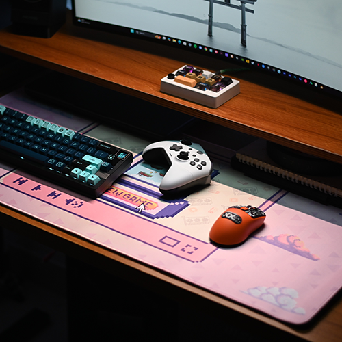 Enjoy a spacious and durable gaming surface with the “Retro Pink” mousepad. Featuring a captivating 90s aesthetic with pixel art and soft pink tones, this mousepad adds a unique touch to your setup. The “Speed” type glass cloth surface provides smooth and rapid mouse tracking. Measuring 900 x 400 x 4mm, it offers extensive coverage for any gaming or work activity. Constructed with a natural rubber base for a non-slip grip, this mousepad is also watersplash-proof, washable, and all-weather ready. Elevate your setup with this stylish and functional mousepad.